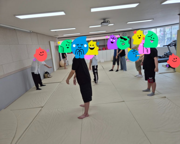 강사 선생님의 동작을 따라 하기 시작했습니다.