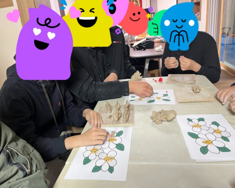 이번 시간에는 '무궁화 그림 위에 찰흙